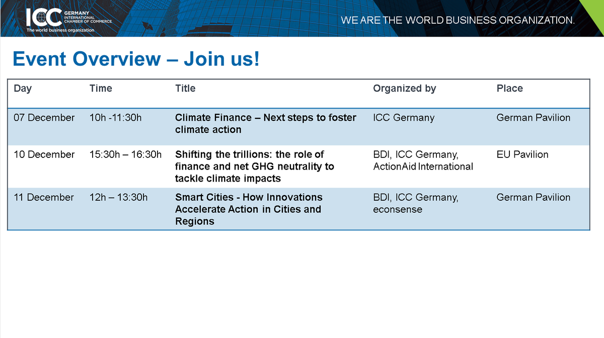 Come and discuss Climate Finance and GHG Neutrality with the World Business Organization, BMU, BMZ, and UNEP FI. Find out more here.